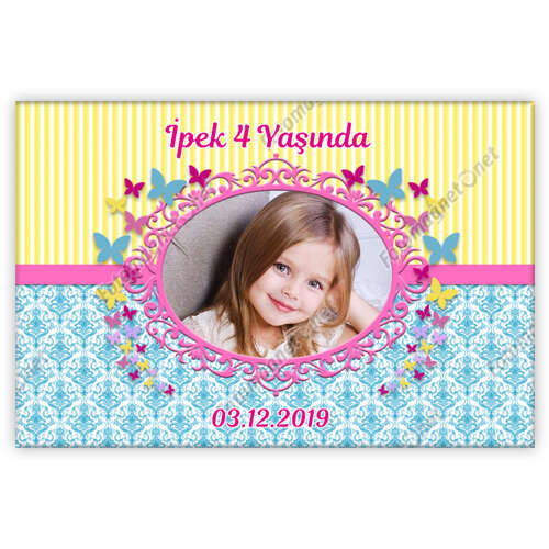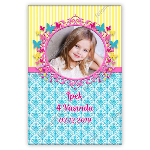 Pembe Mavi Kelebek Temalı - Poster - Kapı Süsü