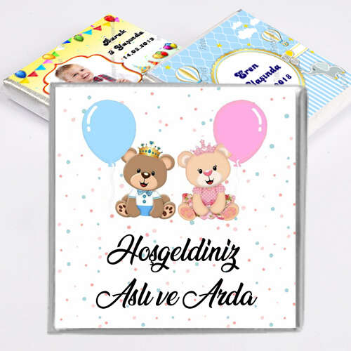 Hoş Geldin Bebek - İkizler Temalı - Çikolata - Sargı Etiketi - 25