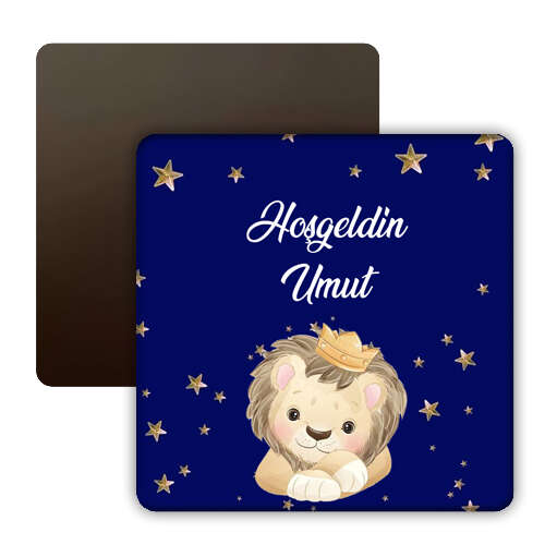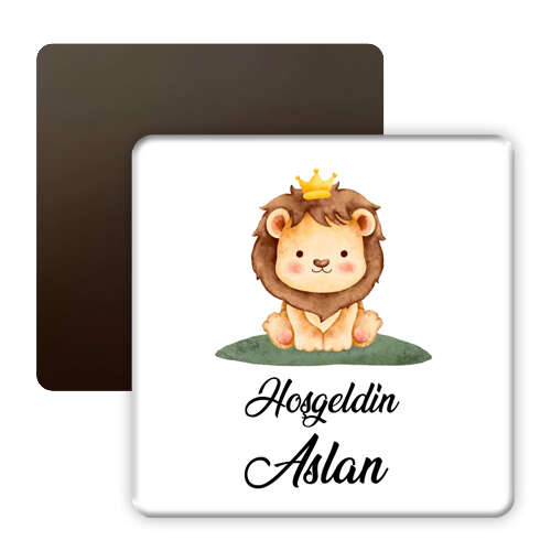 Hoş Geldin Bebek - Aslan Temalı - Kare - Magnet