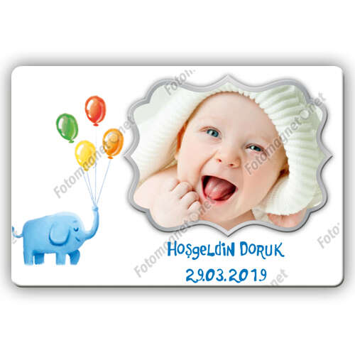 Balonlu Mavi Fil Temalı - Hoş Geldin Bebek - Hatıra - Magnet
