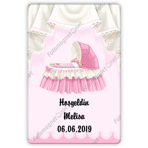 Pembe Beşik Temalı - Hoş Geldin Bebek - Hatıra - Magnet