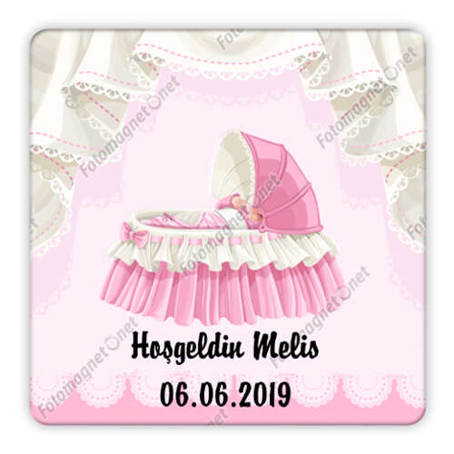 Pembe Beşik Temalı - Hoş Geldin Bebek - Kare - Hatıra - Magnet