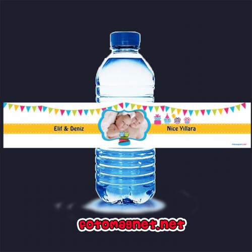 Baykuş Ailesi Temalı - Fotoğraflı - Şişe Etiketi