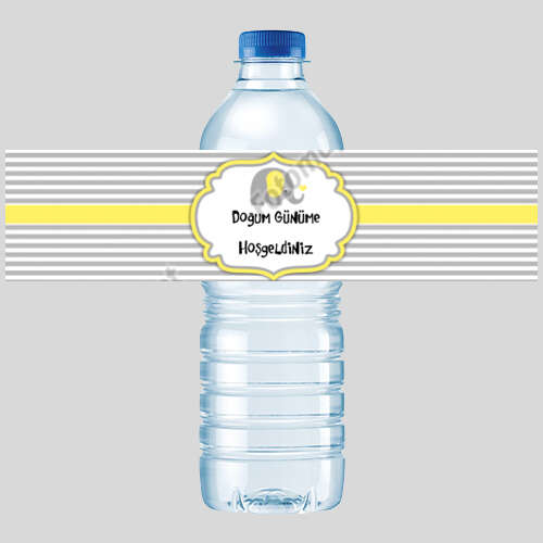 Sarı Gri Sevimli Fil Temalı - Fotoğrafsız - Şişe Etiketi
