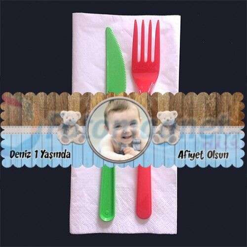 Ahşap Desenli Ayıcık Temalı - Peçete Sargısı