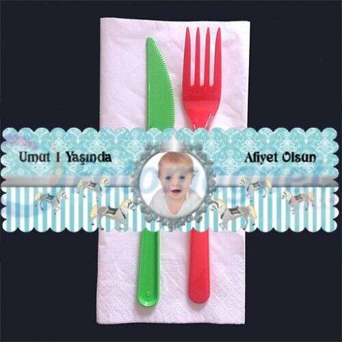 Sevimli Çadır Temalı Mavi - Peçete Sargısı