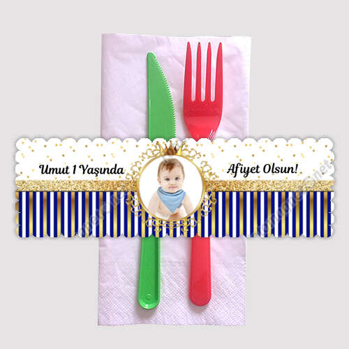 Prens Taçlı Dore Lacivert - Peçete Sargısı
