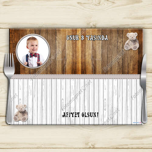 Sevimli Ayıcık Temalı Beyaz Ahşap Desenli - Amerikan Servis