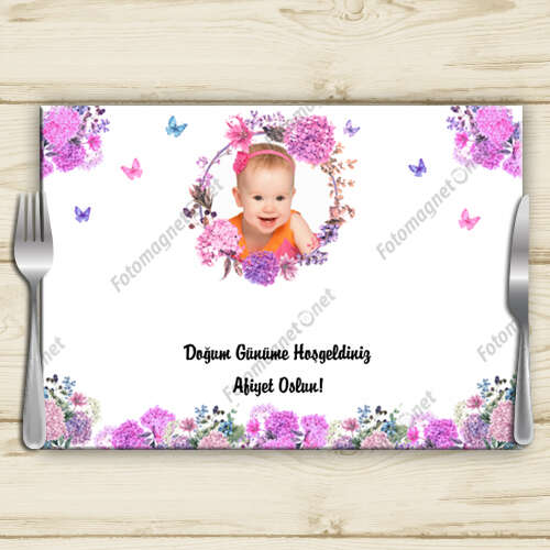 Pembe Mor Çiçek Temalı - Amerikan Servis