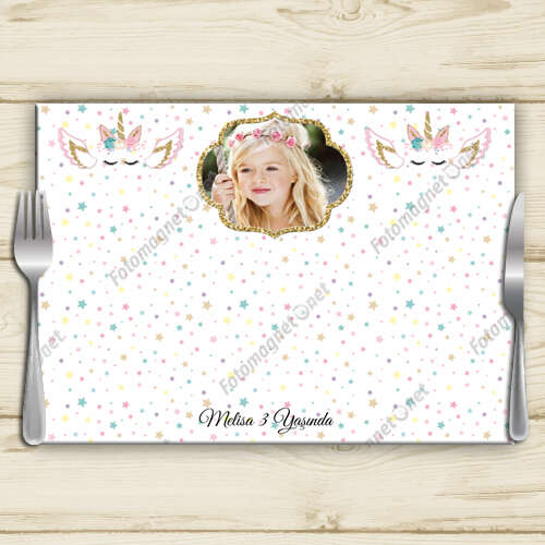 Unicorn Temalı Yıldızlı - Fotoğraflı - Amerikan Servis