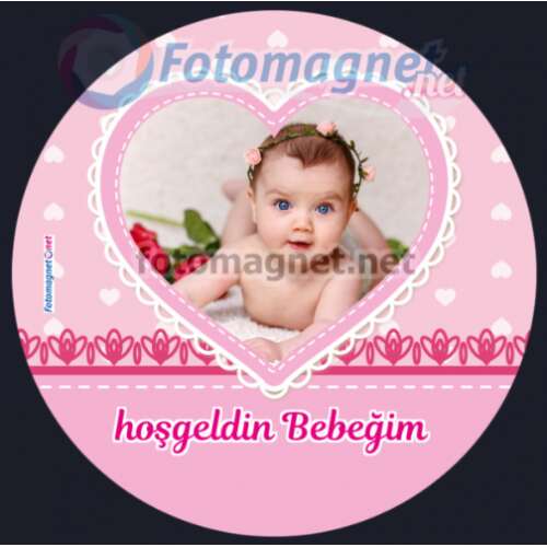 Baby Shower Pembe Kalp Temalı - Yatay - Magnet