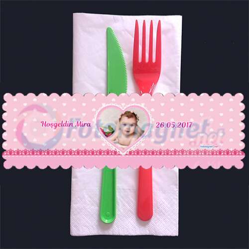 Baby Shower Pembe Kalp Temalı - Peçete Sargısı