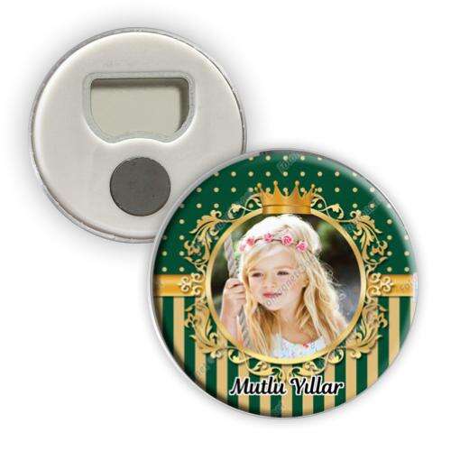Gümüş Çerçeveli Sarı Doğum Günü - Fotoğrafsız - Magnet - Açacak