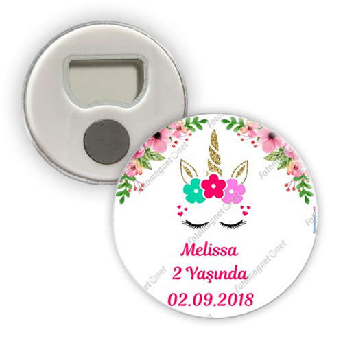 Unicorn Temalı Çiçekli - Magnet - Açacak
