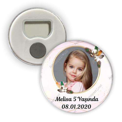 Pembe Mavi Çiçek Çerçeveli - Fotoğraflı - Metal - Magnet - Açacak
