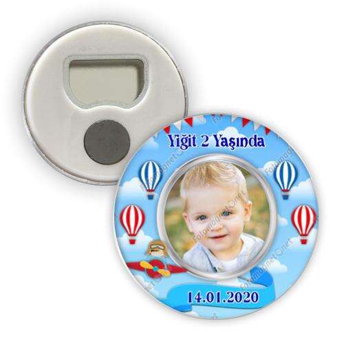 Uçak Ve Balon Temalı - Fotoğraflı - Metal - Magnet - Açacak