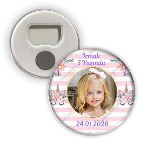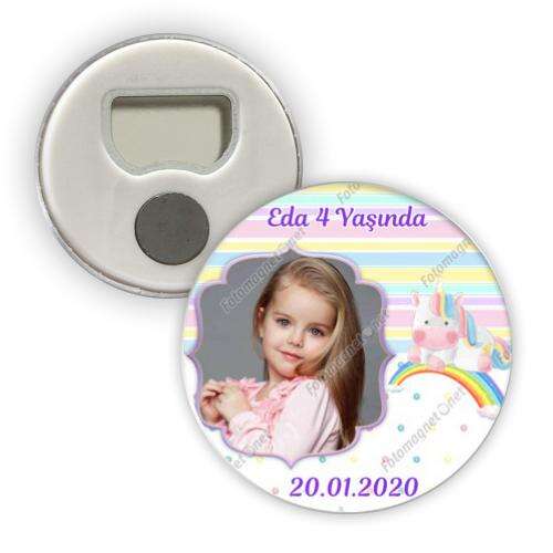 Unicorn Ve Gökkuşağı Temalı - Metal - Magnet - Açacak