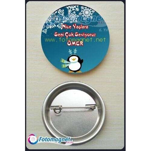 Penguen Temalı - Fotoğrafsız - İğneli Buton Rozet