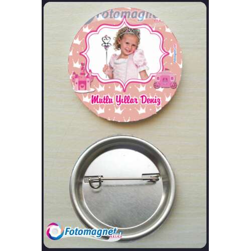 Pembe Fiyonklu Prenses Temalı - İğneli Buton Rozet