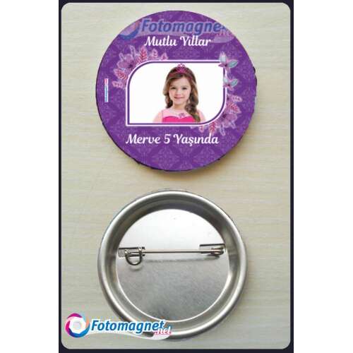 Mor Çiçek Temalı - Fotoğraflı - İğneli Buton Rozet