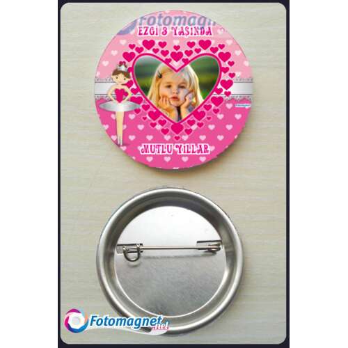 Balerin Temalı Kalpli Çerçeveli - Fotoğraflı - İğneli Buton Rozet