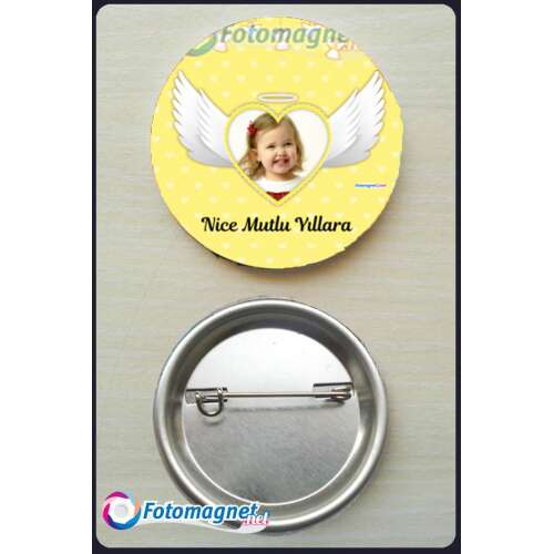 Melek Kanatlı - Fotoğraflı - İğneli Buton Rozet