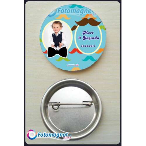 Mavi Bıyık Papyon Temalı - İğneli Buton Rozet