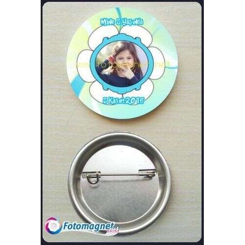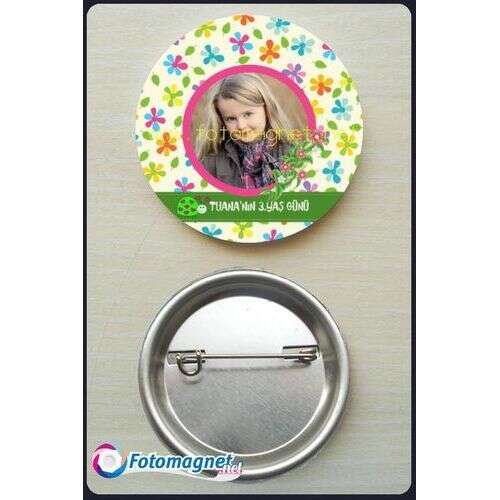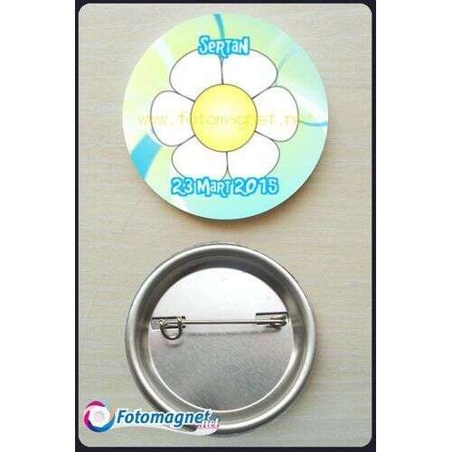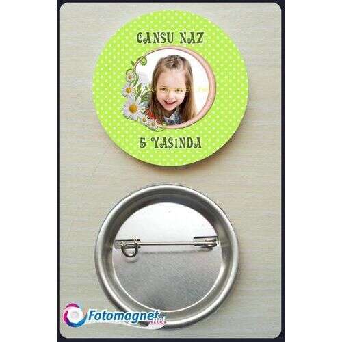 Papatya Temalı - Fotoğraflı - İğneli Buton Rozet