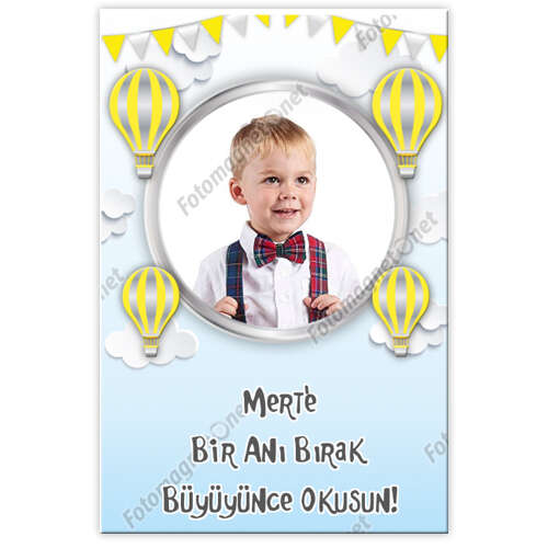 Uçan Balon Temalı - Fotoğraflı - Anı Kartı