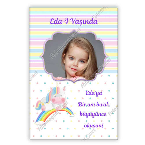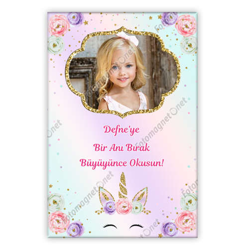 Unicorn Temalı Renkli Çiçekli - Fotoğraflı - Anı Kartı