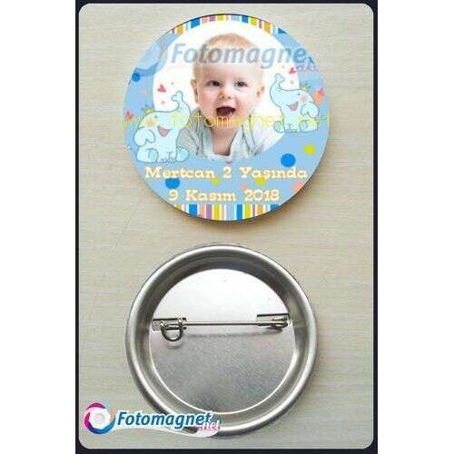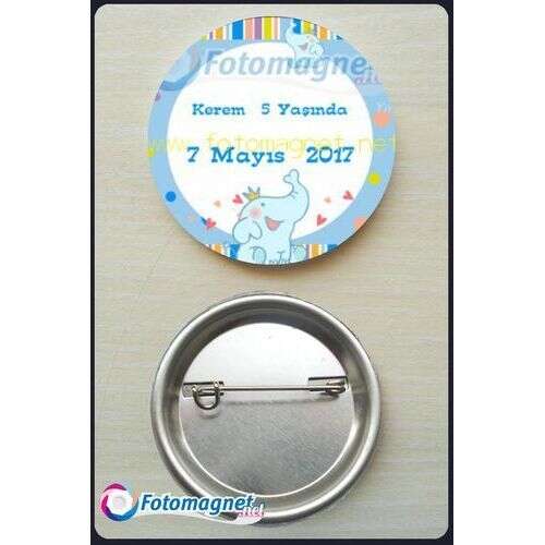 Sevimli Mavi Fil Temalı - İğneli Buton Rozet