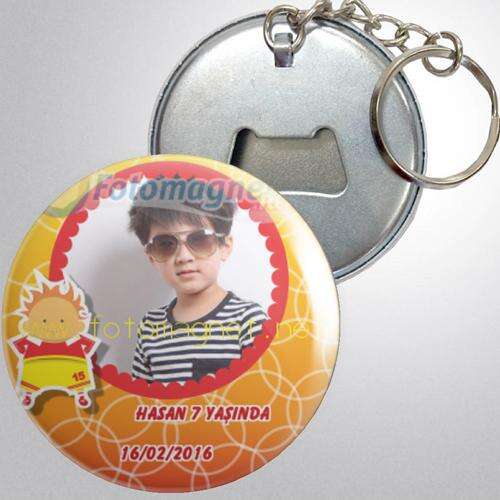 Sarı Kırmızı Sevimli Futbolcu - Doğum Günü Partisi - Fotoğrafsız - Metal - Açacak - Anahtarlık
