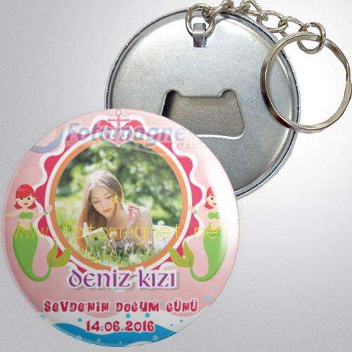 Yeşil Deniz Kızı - Doğum Günü Partisi - Fotoğrafsız - Metal - Açacak - Anahtarlık