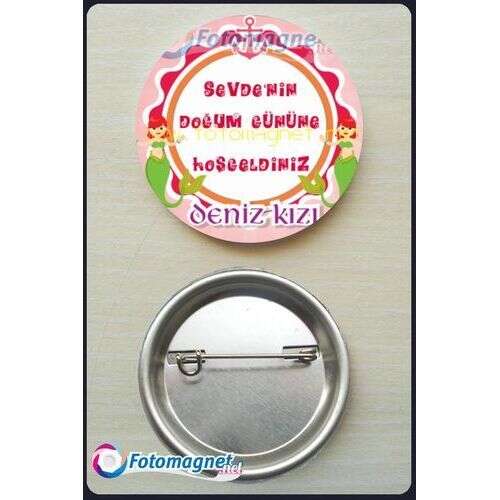 Yeşil Deniz Kızı - Doğum Günü Partisi - Fotoğrafsız - İğneli Buton Rozet