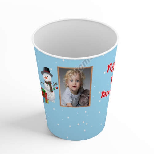 Kardan Adam Temalı Mavi - Karton Bardak - Sargı Etiketi