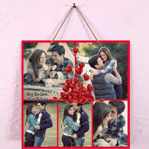 5 - Fotoğraflı - Ahşap Pano Tablo Kalpli Tema 38x38cm