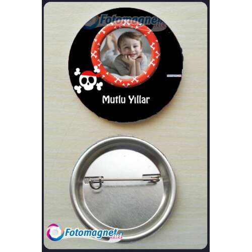 Korsan Temalı - Fotoğraflı - İğneli Buton Rozet