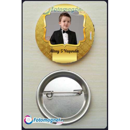 Gold Temalı - Fotoğraflı - İğneli Buton Rozet