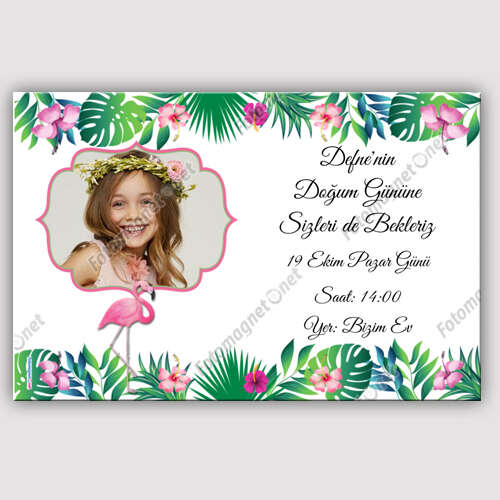 Aloha Temalı Flamingolu - Fotoğraflı - Doğum Günü Davetiyesi