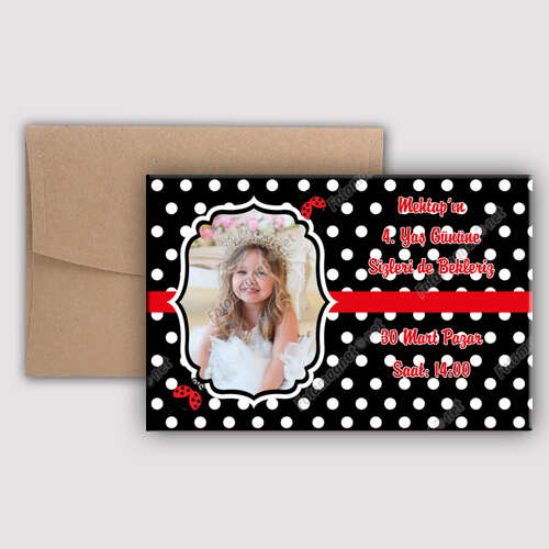 Uğur Böceği Temalı Doğum Günü Zarflı Eko Davetiye