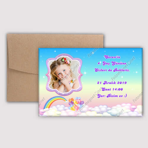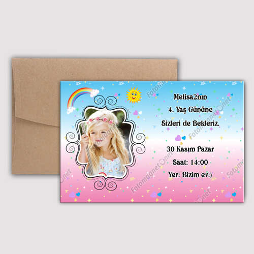 Gökkuşağı Temalı - Fotoğraflı - Zarflı Davetiye