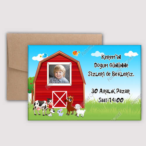 Çiftlik Ve Hayvanlar Temalı - Doğum Günü Davetiyesi