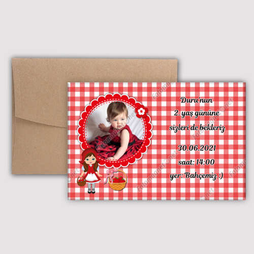 Kırmızı Başlıklı Kız Temalı Zarflı - Doğum Günü Davetiyesi