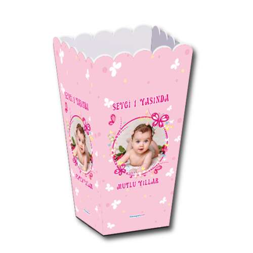 Pembe Kelebek Temalı - Fotoğraflı - Popcorn Kutusu