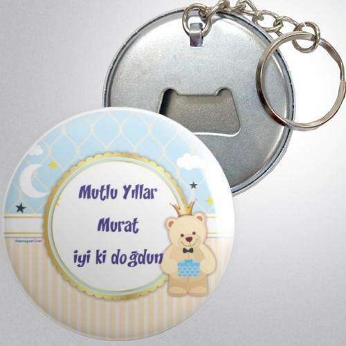Sevimli Ayıcık Temalı - Fotoğraflı - Metal - Açacak - Anahtarlık