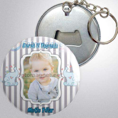 Sevimli Mavi Fil Temalı - Metal - Açacak - Anahtarlık