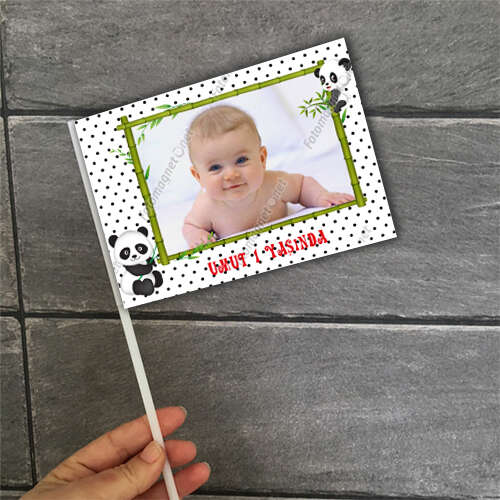 Panda Temalı Siyah Beyaz Puantiyeli Parti Bayrağı