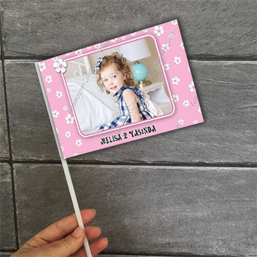 Papatya Temalı Pembe Parti Bayrağı
