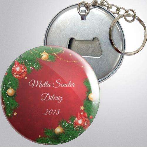 Yeni Yıl Temalı Kırmızı - Metal - Açacak - Anahtarlık