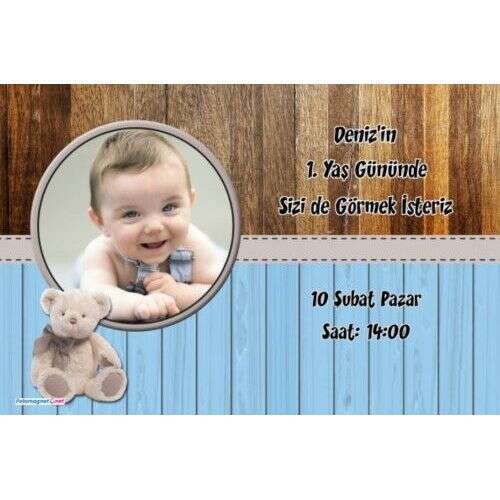 Ahşap Desenli Ayıcık Temalı Davetiye